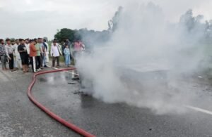 धू – धू कर जल उठी सड़क पर दौड़ती कार