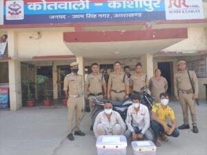 काशीपुर।दिनांक 17-4- 2022 को वादी मुकदमा मुख्य पुजारी नागनाथ मंदिर दीपक नाथ गोस्वामी ने कोतवाली काशीपुर पर तहरीर दी की अज्ञात चोरों द्वारा दिनांक 16/4/ 2022 की सांय को मुख्य नागनाथ मंदिर के नाग प्रतिमा को चोरी कर लिया गया है जिस पर कोतवाली काशीपुर पर एफ आई आर नंबर 224/ 2022 धारा 380 आईपीसी पंजीकृत किया गया उक्त मामला मंदिर में चोरी तथा मुख्य नाग प्रतिमा के चोरी होने के कारण लोगों की आस्था से जुड़ा होने के कारण संवेदनशीलता के आधार पर पुलिस अधीक्षक महोदय काशीपुर तथा पुलिस क्षेत्राधिकारी महोदय काशीपुर के निर्देशन में प्रभारी निरीक्षक महोदय काशीपुर के नेतृत्व में घटना के अनावरण हेतु तत्काल एक टीम का गठन किया गया। उक्त टीम द्वारा सीसीटीवी कैमरे तथा सुरागरसी पतारसी के आधार पर कल सांय को गुरुद्वारा रोड के पास मोटरसाइकिल सवार दो युवकों को पकड़ा जिनके कब्जे से आधी नायक प्रतिमा बरामद हुई जिनके द्वारा पूछताछ पर उक्त नाक प्रतिमा चोरी किया जाना तथा उसकी आधी प्रतिमा को बांसवाड़ा निवासी कबाड़ी नन्हे को बेचना बताया अभियुक्त गणों धारा 411 IPC की बढ़ोतरी करते हुये गिरफ्तार करते हुए उनकी निशानदेही पर कबाड़ी नन्हे को गिरफ्तार कर उसके कब्जे से शेष आधी प्रतिमा को बरामद किया गया तीनों अभियुक्त गणों का आपराधिक इतिहास खंगाला जा रहा है अभियुक्तगणों को समय से माननीय न्यायालय पेश किया जा रहा है । नाम पता अभियुक्त 1-शोएब पुत्र ताहिर निवासी तूफैल का बाग कटोरा ताल कोतवाली काशीपुर जनपद उधम सिंह नगर उम्र 19 वर्ष 2- सूरज शर्मा पुत्र विजय शर्मा निवासी कानूनगोयान काशीपुर उधम सिंह 3-कबाड़ी नन्हे पुत्र बुद्धा निवासी मधुबन नगर लक्ष्मीपुर पट्टी कोतवाली काशीपुर जनपद उधम सिंह नगर उम्र 54 वर्ष